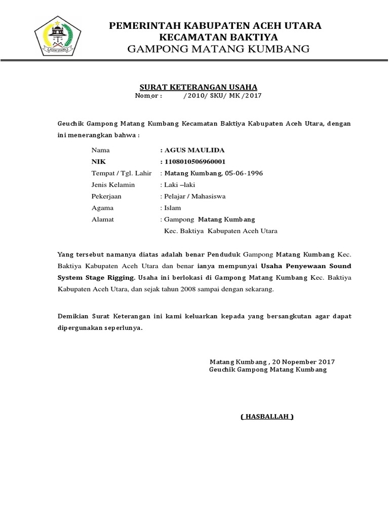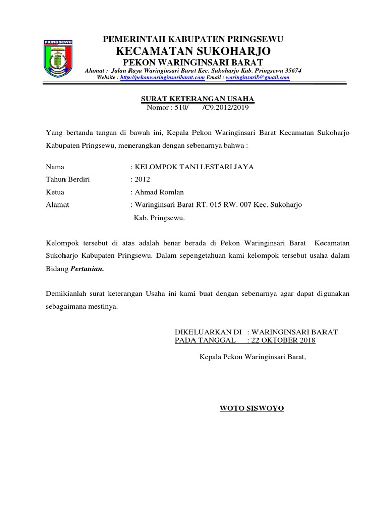 Contoh Surat Keterangan Usaha Dari Desa Doc Nusagates